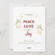 Personalised Christmas Card with a rustic, natural theme in red, green and gold. The design features Christmas foliage including pine needles and pine cones, holly and holly berries, along with traditional Christmas ornaments and stars. The "Merry Christmas" wording forms the base of the Christmas Tree. The back of the card has wishes of Peace Love and Joy, which you can personalise.