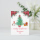 Merry Christmas Holiday Postcard with Green Christmas Tree, Red White Gnome/Santa and Gifts, watercolor poinsettia flowers. Xmas/Christmas Greeting Holiday Cards. Use personalise this template option to change the text. | Use customise further option to change the text style, size and colour if required. Check out our store collection below for more products with this design.