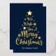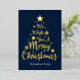 Merry Christmas Tree Shape Blue Foil Holiday Card