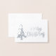 Personalised simple, elegant and modern folded grey silver Christmas greetings foil card with brushed handwritten calligraphy script on front side and a silver star on the back side. +++++++++++ Personalised with your photo and your text and signature inside the card!