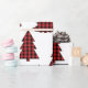 This design features a merry Christmas tree cute custom, a classic simple red calligraphy script, a classic buffalo check plaid pattern, a custom holiday greeting gift wrap, a Christmas gift wrapping supplies, a stylish trendy typography font text, simple Christmas tree pattern style, a classic country farm farmhouse design, a custom Christmas wrapping paper, with a red and black buffalo plaid