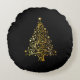 Merry Christmas Tree Stars Black Gold Shiny Chic Round Pillow