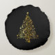 Merry Christmas Tree Stars Black Gold Shiny Chic Round Cushion