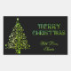 Merry Christmas Tree Stars Black Green Elegant Rectangular Sticker