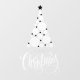 Christmas tree of white balls and black stars and the greeting MERRY CHRISTMAS are featured on this window cling - Choose ANY SIZE and **front or back cling. (Largest size shown, but can be made as small as 4" x 4")