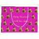 Merry Christmas Tree with Candles Elegant Gold Faux Gold Brown on Hot Pink Background Christmas Trees with Gift Tag Label Design, you can change the custom text Merry Christmas! With Love, Santa with your name and text, Large Glossy Gift Bag