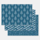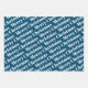 Merry Christmas, trees and polka dots blue holiday Wrapping Paper Sheets. The first sheet features white winter trees on blue background. The second showcases the text :"Merry Christmas" in bold typogtaphy and the third displays polka dots-snow.