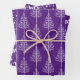 Merry Christmas, trees and polka dots purple holiday Wrapping Paper Sheets. The first sheet features white winter trees on purple background. The second showcases the text :"Merry Christmas" in bold typogtaphy and the third displays polka dots-snow.
