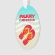 Customise this beach themed holiday ornament with your own message. Features flip flops on a sandy beach with beach waves. This tropical ornament features the same design on both sides.