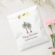 Merry Christmas party favour bag, with a botanical palm trees and string lights illustration. With customisable typography lettering, you add your own information. A tropical addition to your beach inspired holiday party.