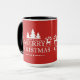 Start your holiday celebrations off in style with this festive yet classic mug. Shown in a Red with a graphic of trees, Reindeers and the words Merry Christmas in White, it's perfect for sipping your early morning coffee or some hot chocolate. Black interior and handle. Makes a great gift item too. Customise this item or buy as shown.