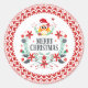 Merry Christmas Typography & Christmas Wreath Owl Classic Round Sticker
