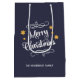 Merry Christmas Typography Midnight Blue White Medium Gift Bag
