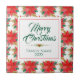 Merry Christmas Typography & Poinsettia Pattern Tile