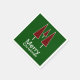 Merry Christmas Typography Red Green Pine Trees Napkin