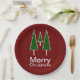 White Merry Christmas typography. Christmas trees in dark green. Great for all your holiday parties.