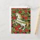 Painting of Christmas Unicorn with red poinsettia flowers and green leaves on a dark background.