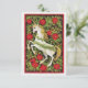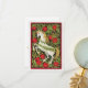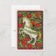 Painting of Christmas Unicorn with red poinsettia flowers and green leaves on a dark background.