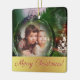 This fun holiday ornament features a fun ornament within an ornament design. It features an image of a glass ball or bauble picture frame where you can upload your own photo. The caption reads "Merry Christmas!" The back has space for a short greeting or message as well as your name and the year. Perfect gift or memento.