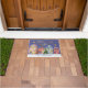 Merry Christmas Village Scene Holiday Doormat. The wonderful skating bear just loves Christmas with this charming Merry Christmas Village Scene behind him -- snow on the ground -- light houses; stars in the sky; snow covered tree-- peaceful and serene. Personalize your message with your name. Any design questions or requests, just send an email to: charmdesignstudio@rcn.com