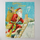 Merry Christmas santa claus vintage art holiday Poster .