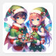 Merry Christmas Watercolor Anime Elves Holiday Square Sticker