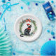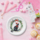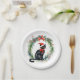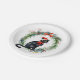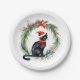 Merry Christmas Watercolor Black Cat and Wreath Paper Plate