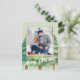 This design features a merry Christmas photo postcard, with watercolor, with simple green background, and a one photo template, a simple elegant, cute whimsical, with a Christmas tree, with rustic, pine tree, and whimsy typography