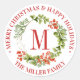 Merry Christmas | Watercolor Monogram Wreath Classic Round Sticker
