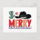 Merry Christmas Western cowboy hat Holiday Postcard