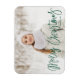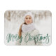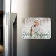 Cute holiday photo magnet with "Merry Christmas" displayed at the bottom of the design in a green handwritten script. Personalise the whimsical Christmas magnet with your horizontal photo and family name.