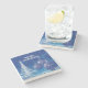 Merry Christmas White & Blue Christmas Trees Stone Coaster