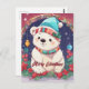 Merry Christmas White Polar Bear, this Christmas design features a cute White Polar Bear with the text message, "Merry Christmas", in traditional red and green colours with loads of Holly and white winter snow.