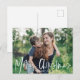 This modern holiday photo card features white calligraphy script over a full-bleed photo. This design accommodates a single, horizontal photo on the front of the card. On the reverse side you will find plenty of space to write a personal greeting. Postcards are a easy and economical way to send holiday cards to everyone on your list!