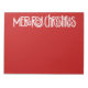 A unique, original, hand-drawn, cheerful Merry Christmas text design in white on red, perfect for celebrating the festive season.