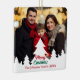 This chic, modern family photo double sided Christmas ornament features your annual holiday photograph framed by a bottom border of white Christmas trees silhouette. Personalise with red and green script for a beautiful minimalist photograph Christmas gift with a 2nd photograph on the back.