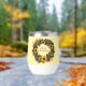Custom Christmas Barware with a unique wreath of holly and sunflowers. A cheery Christmas wine glass, a unique Christmas gift to cheer up your table setting this holiday season.