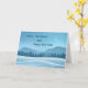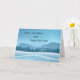 Winter landscape with Merry Christmas and Happy New Year text. Cosy greeting card for the holidays with a blank white interior. Snowy winter landscape on the back. Editable.