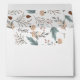 This Christmas envelope offers the greeting "Merry Christmas" in an elegant modern script and custom text for your name and return address on the back flap. The inside features a boho holiday winter greenery pattern appearing in soft tan and teal colours.