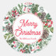 merry christmas winter greenery red calligraphy classic round sticker