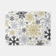 Add some winter fun and elegance to your Christmas holiday season with this gold, silver and black snowflake print.