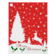 Merry Christmas Winter Snowflakes Red And White Merry Christmas Artwork Depicting A Red Background With White Stars With Christmas Trees And A Prancing Deer On Snow Covered Ground. Accented With Holly And The Words Merry Christmas.