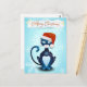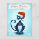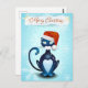Merry Christmas with Black Cat with Santa's Hat Postcard