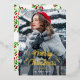 This elegant real foil Christmas greeting card features one full photo with Merry Christmas typography and botanical elements on the front, and a beautiful watercolor botanical holiday pattern on the back.