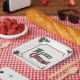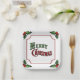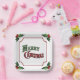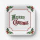 A beautiful Christmas paper plate featuring a vintage-style "Merry Christmas" and border with holly accents. This is great for Holiday table settings or Holiday bar food.