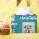 Merry Christmas with One Square Photo - blue Wrapping Paper