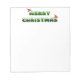 5.5” x 6” notepad with an image of the holiday sentiment “Merry Christmas” in snowcapped green letters and two red Santa hats. See the entire Christmas Notepad collection under the OFFICE category in the HOLIDAYS section.