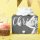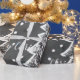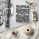Merry Christmas stylish white typography, with a white Christmas tree and ornaments and a grey night sky background repeating pattern monochrome design for your festive cheer.