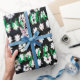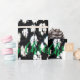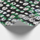 Merry Christmas stylish green typography, with a white floral on black background repeating pattern monochrome design for your festive cheer.