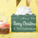 Merry Christmas illustration with text and Christmas symbols decoration on green background